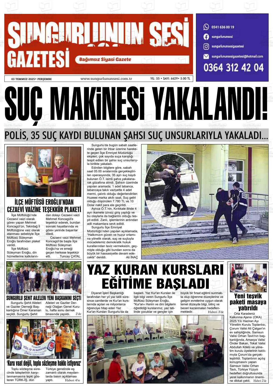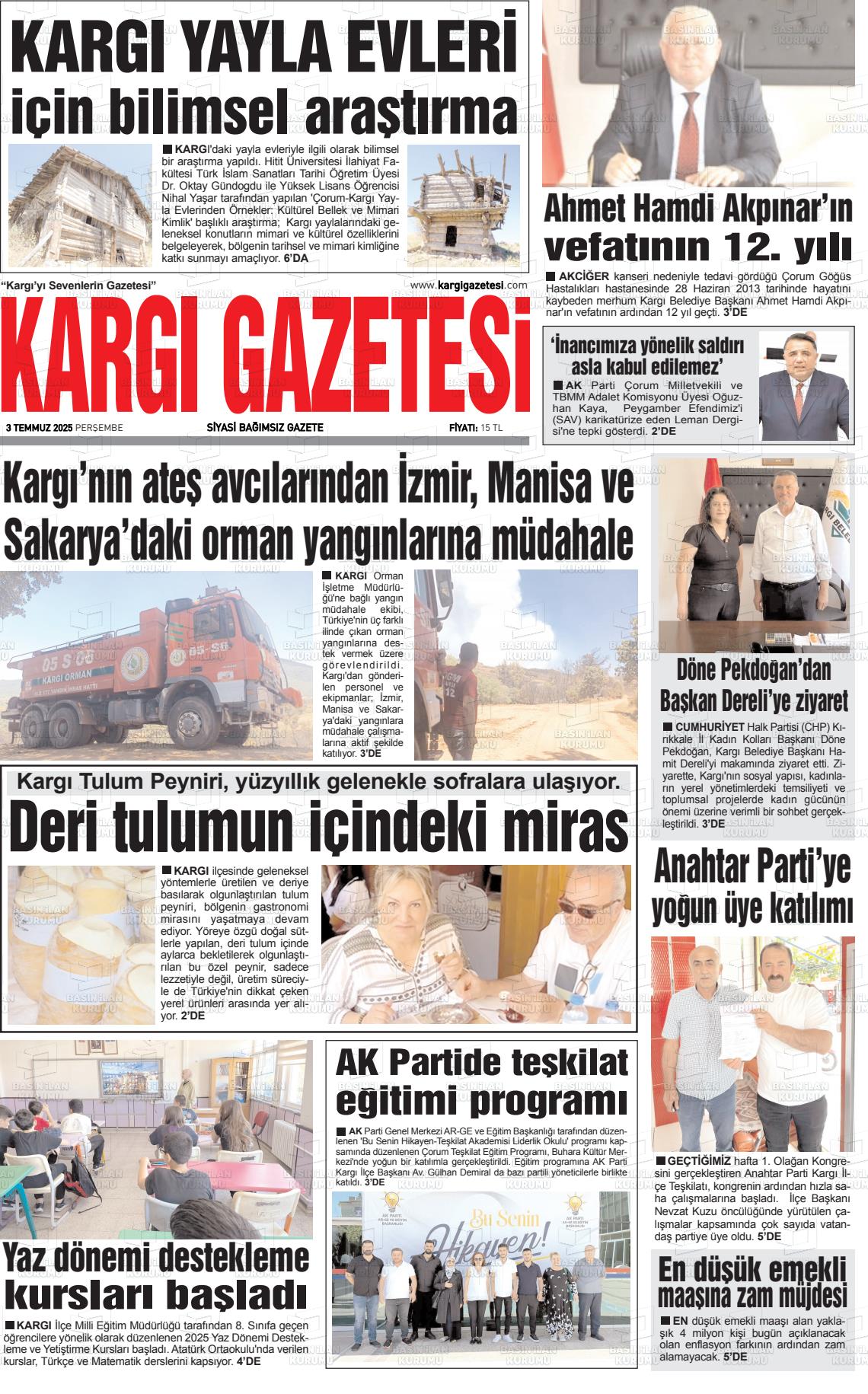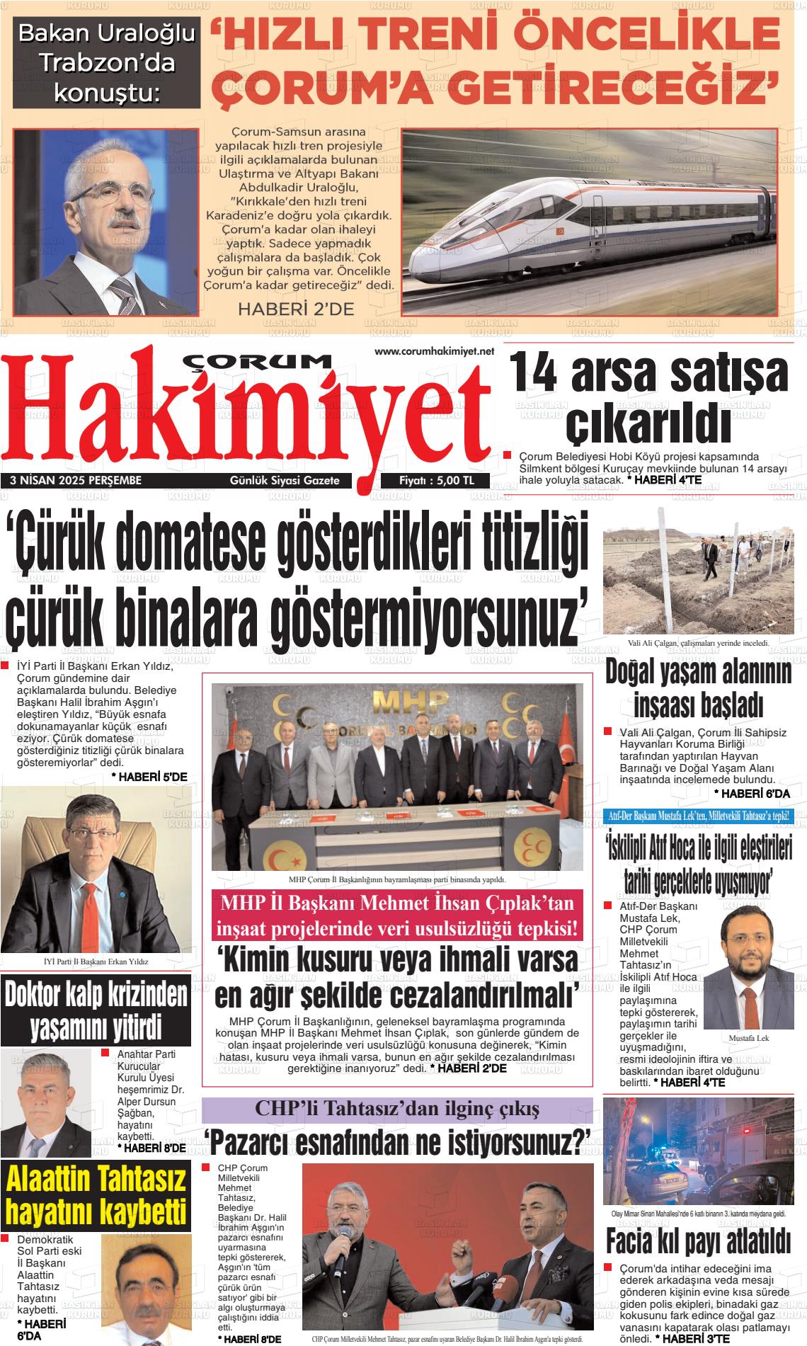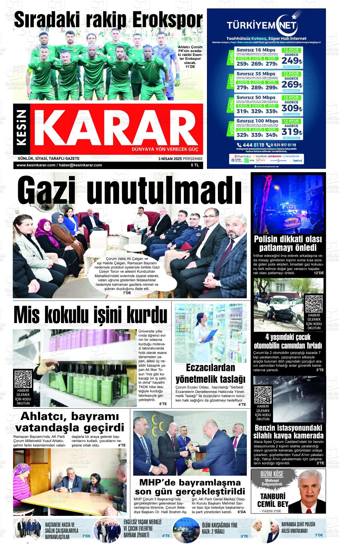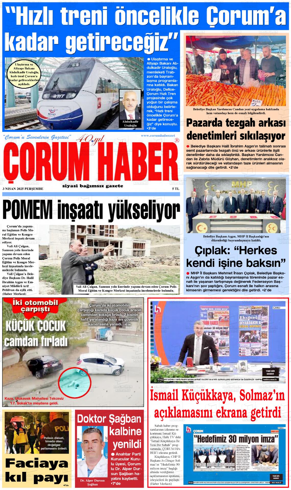 Çorum Yerel Gazeteleri 30 Mart 2026, Pazartesi Günü Manşeti