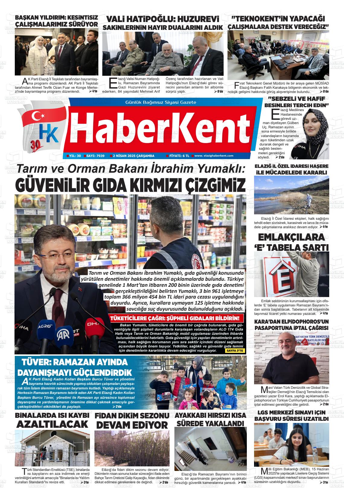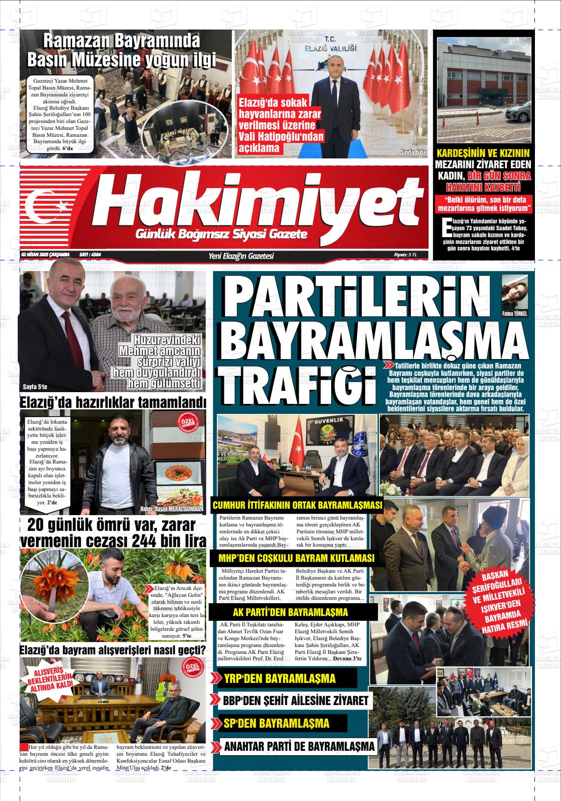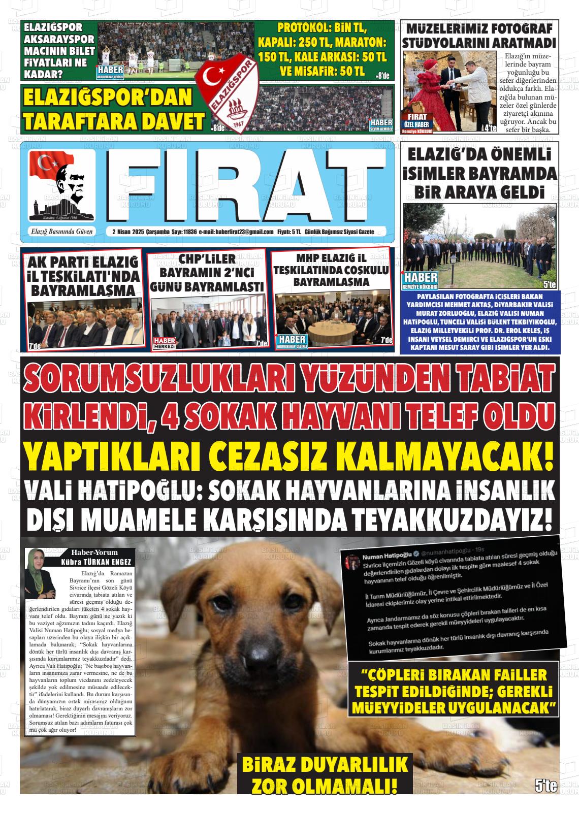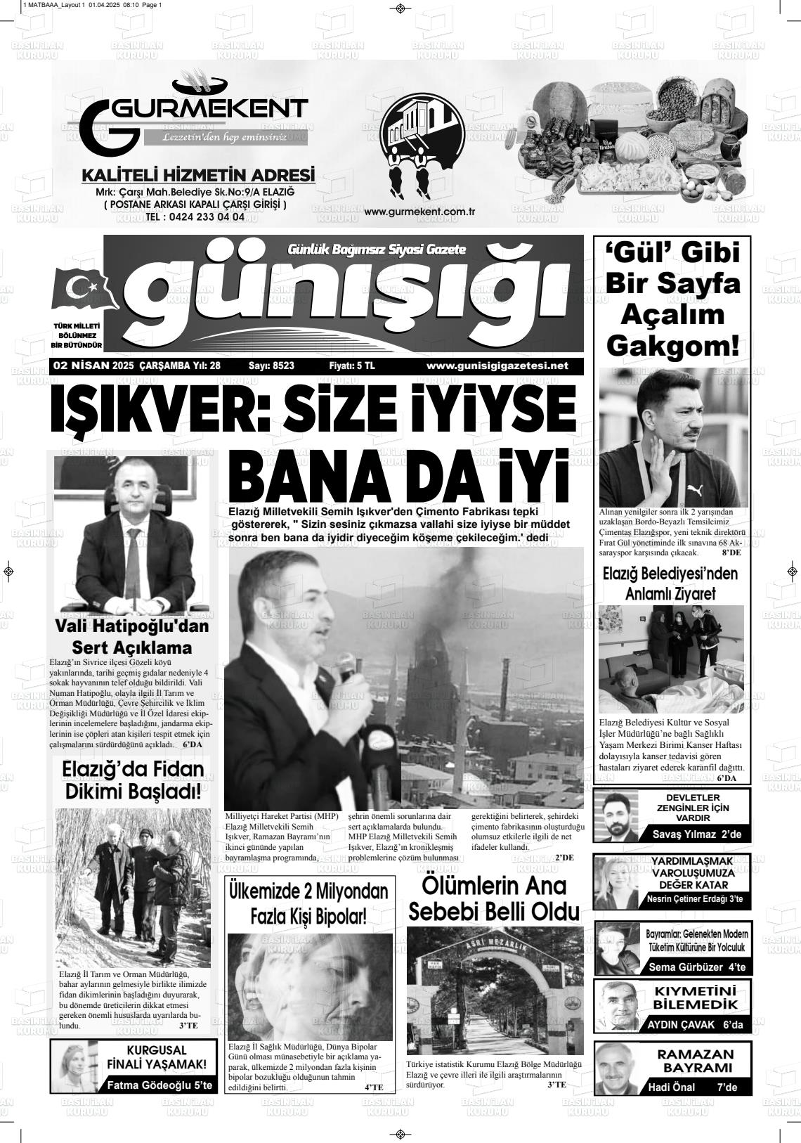 Elazığ Yerel Gazeteleri 03 Kasım 2025, Pazartesi Günü Manşeti