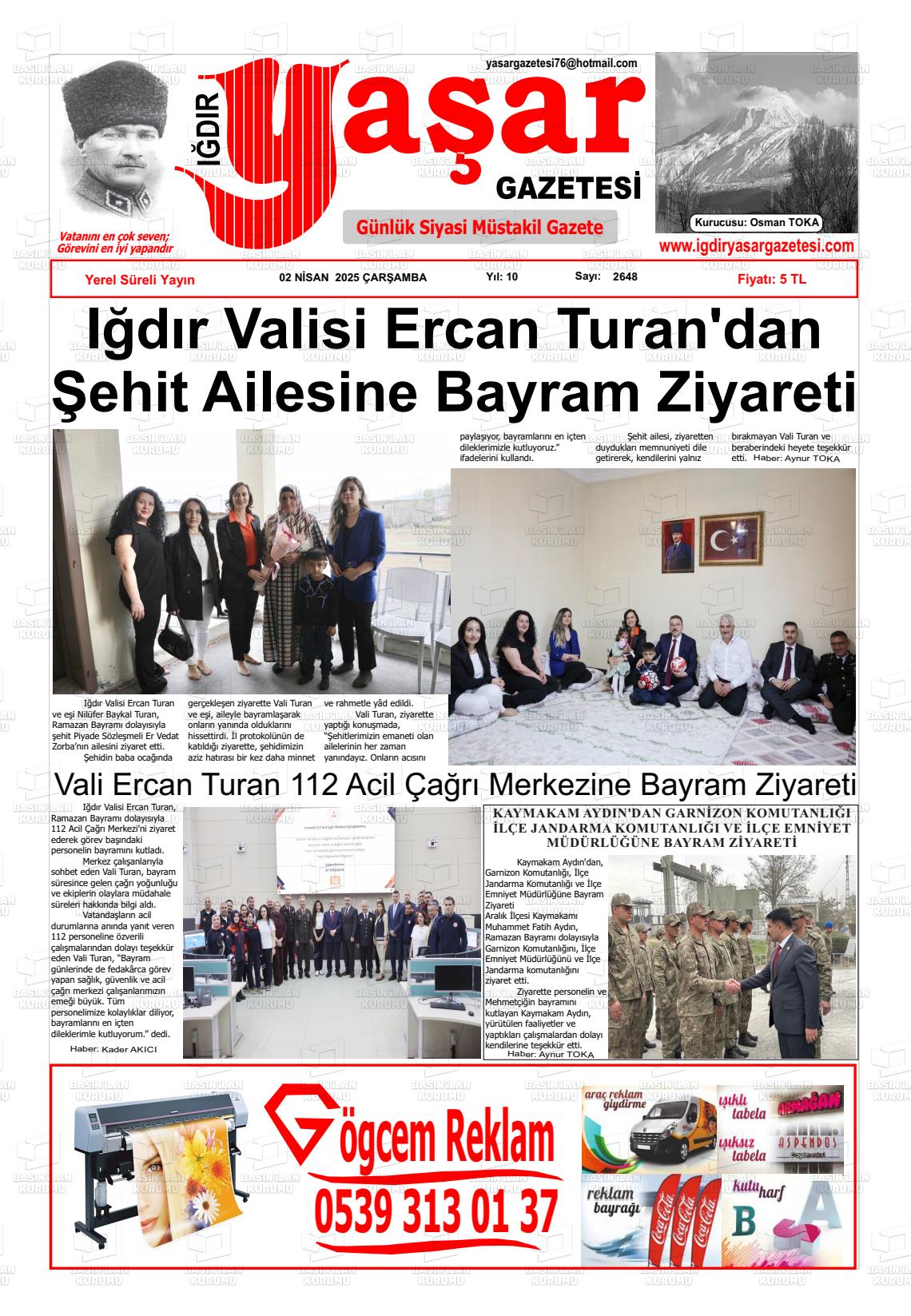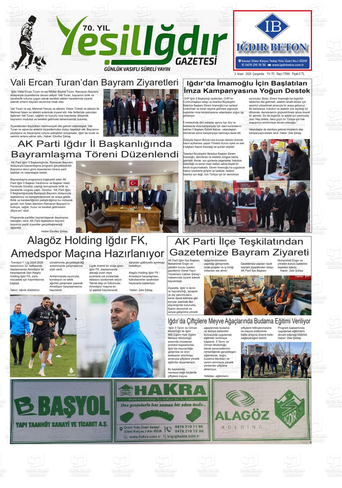 Iğdır Yerel Gazeteleri 30 Mart 2026, Pazartesi Günü Manşeti
