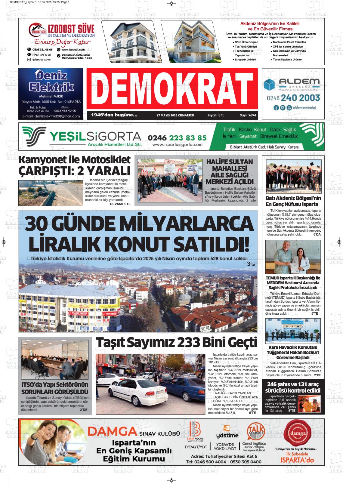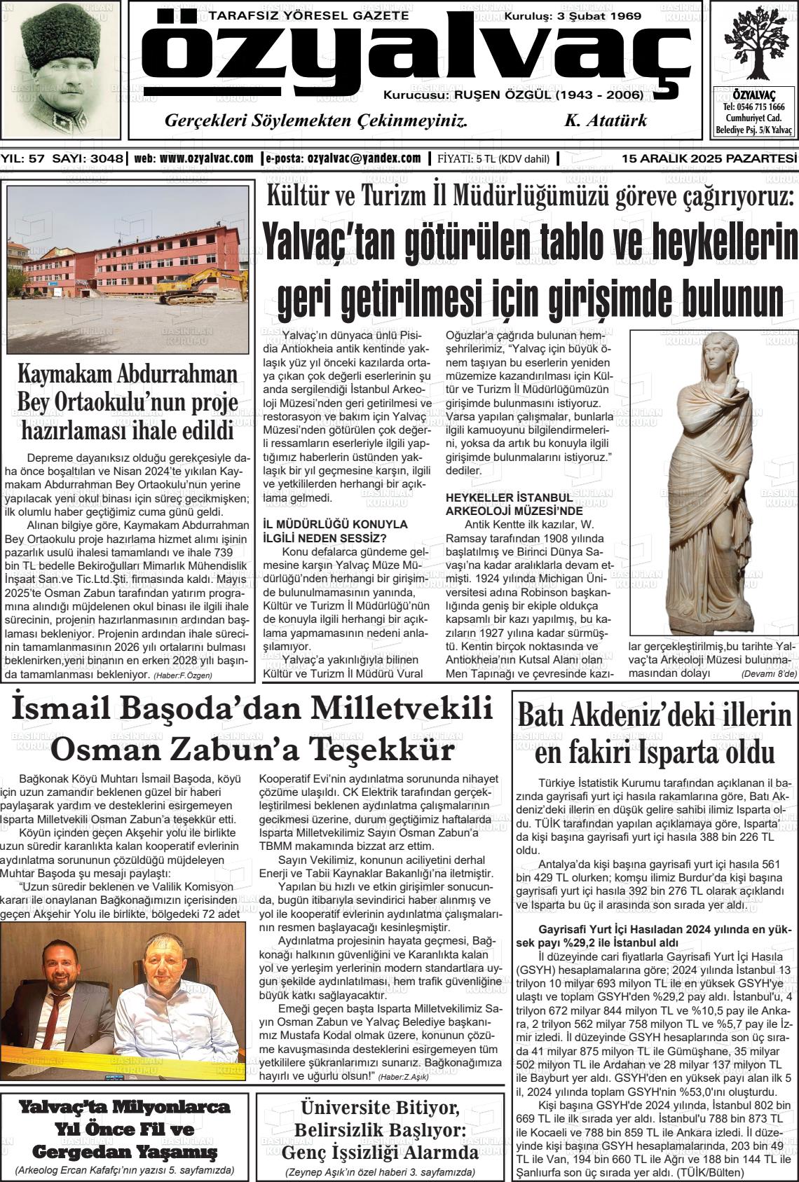 Isparta Yerel Gazeteleri 08 Şubat 2026, Pazar Günü Manşeti