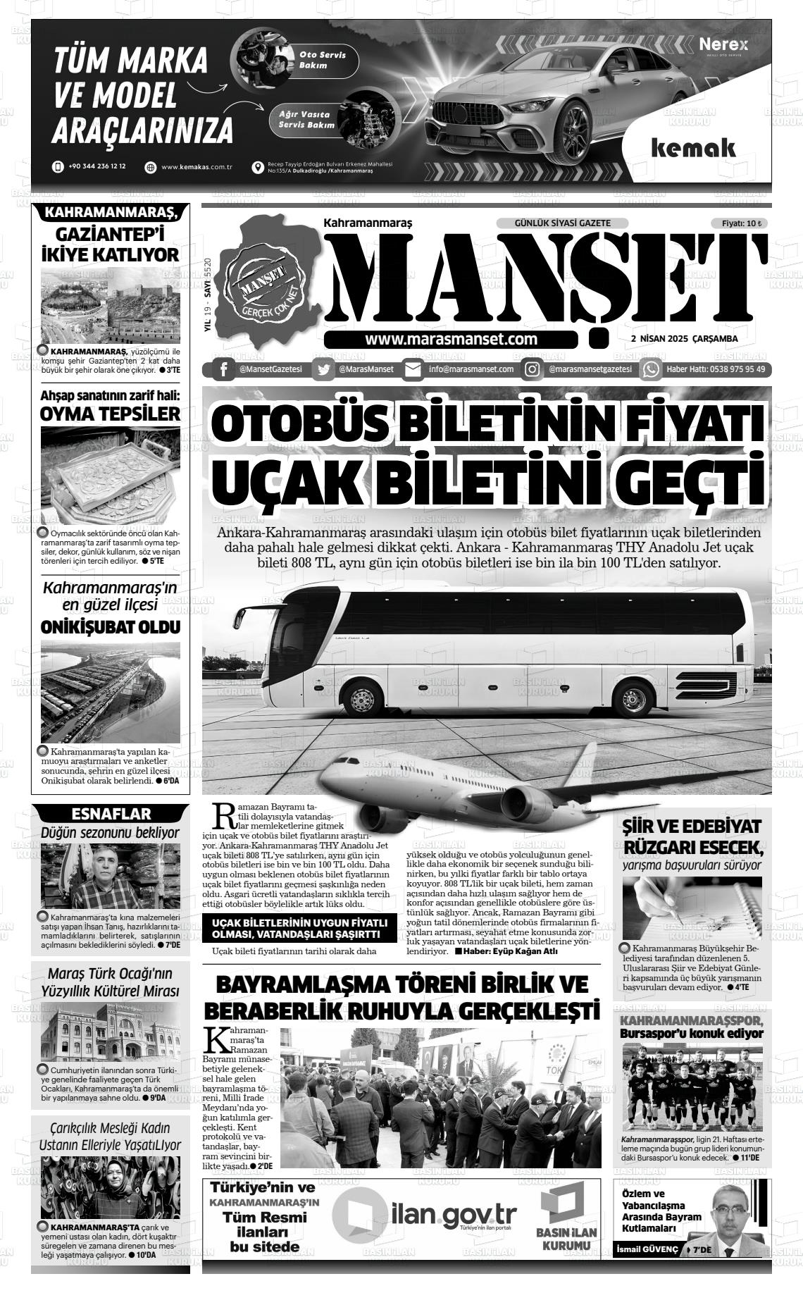 Kahramanmaraş Yerel Gazeteleri 30 Mart 2026, Pazartesi Günü Manşeti