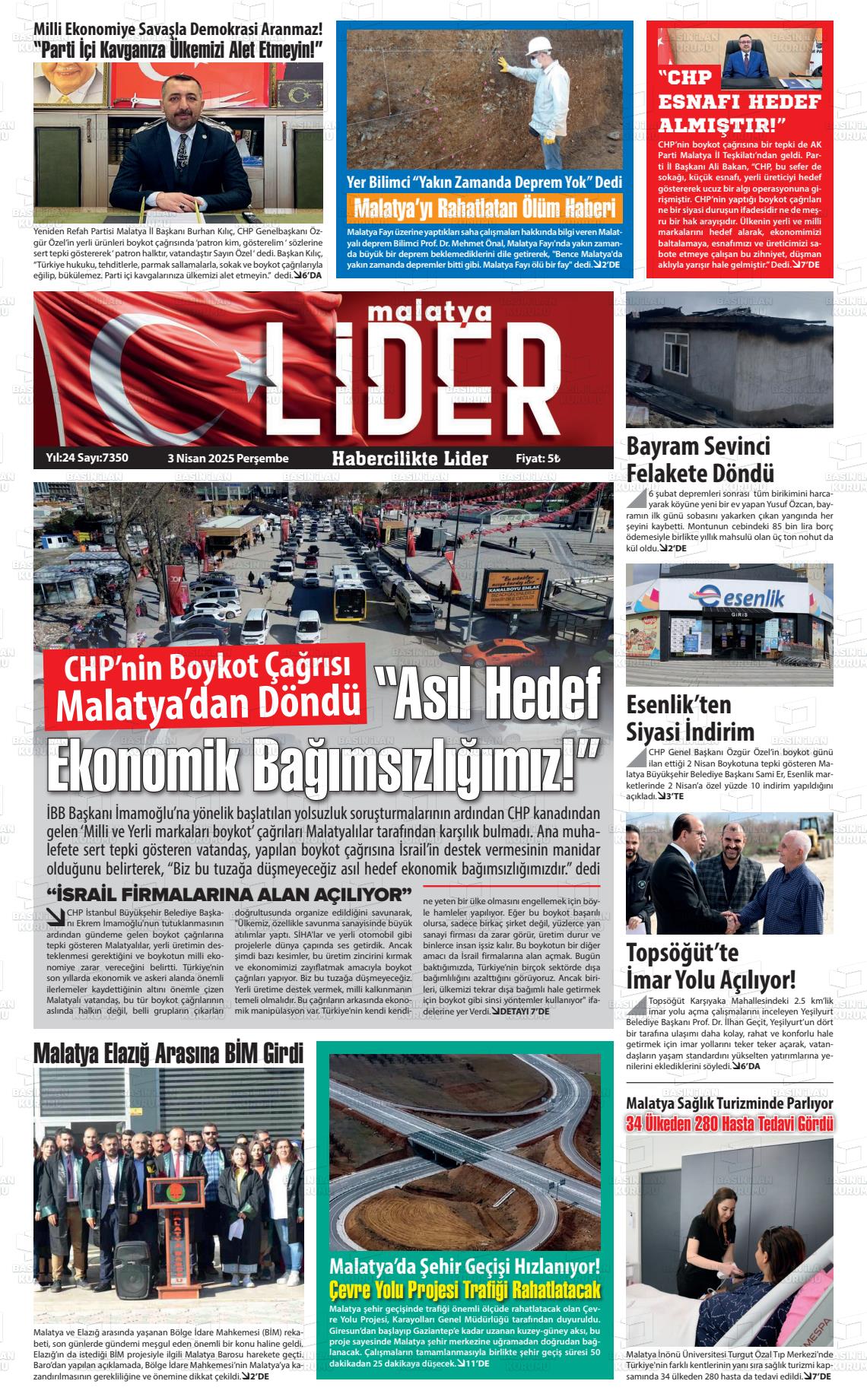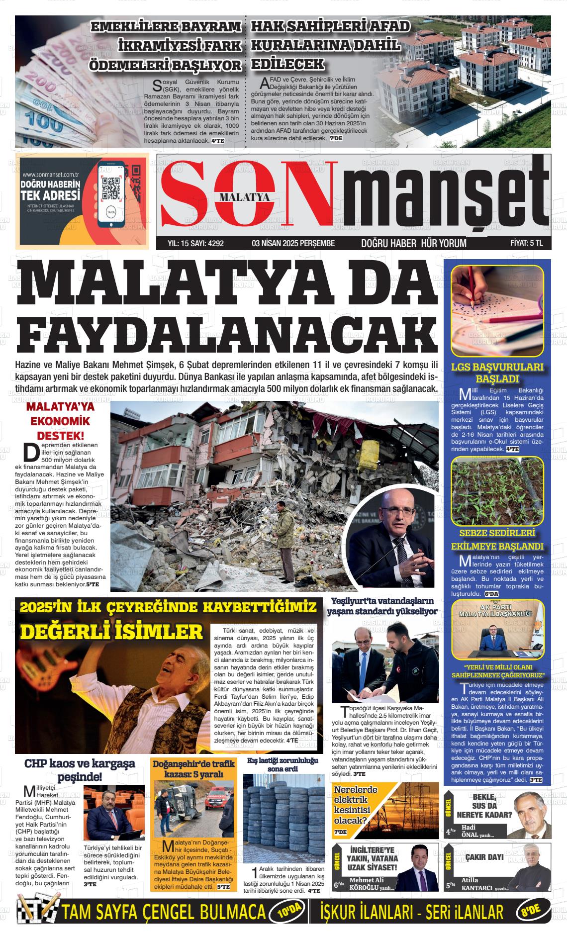 Malatya Yerel Gazeteleri 30 Mart 2026, Pazartesi Günü Manşeti