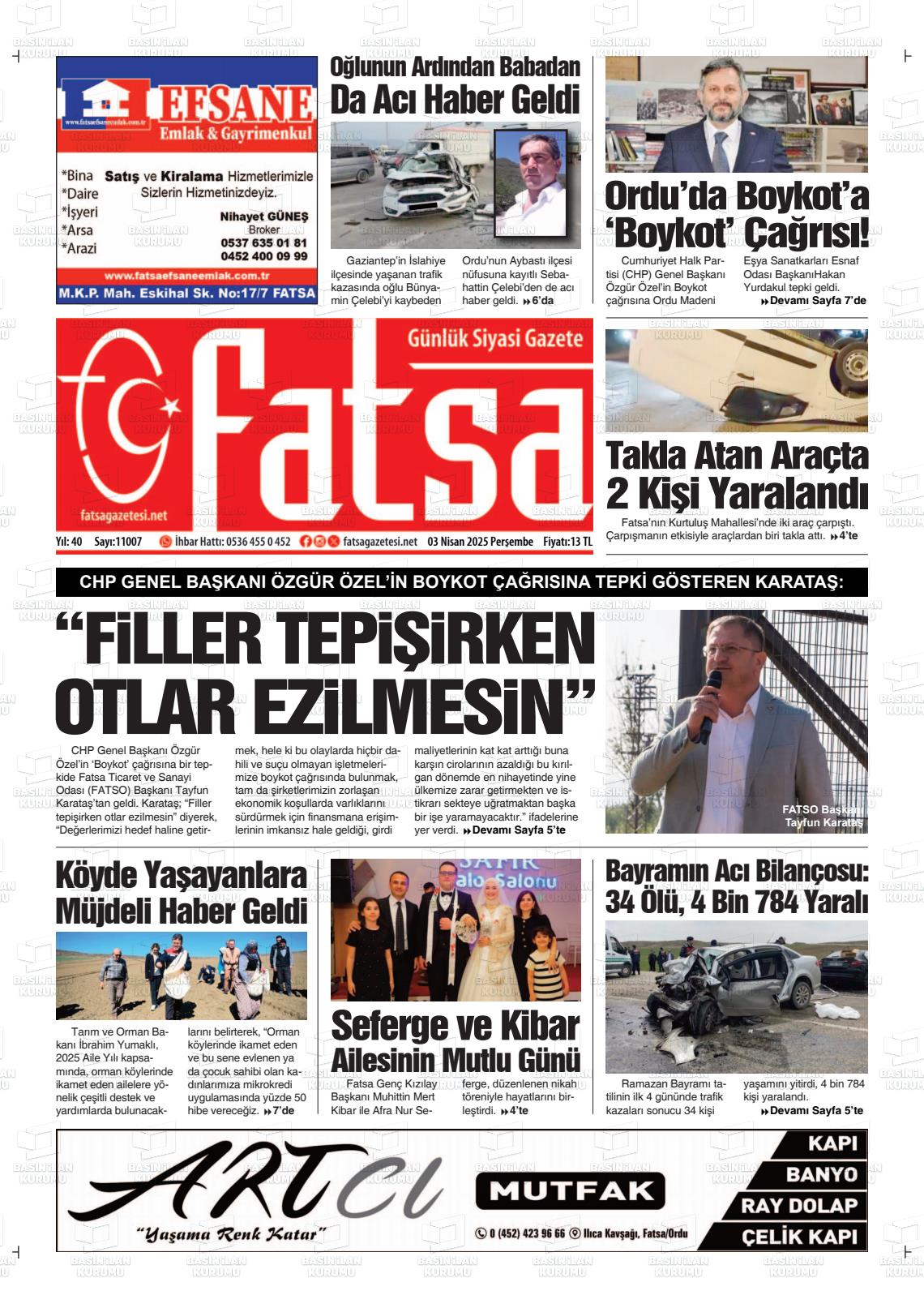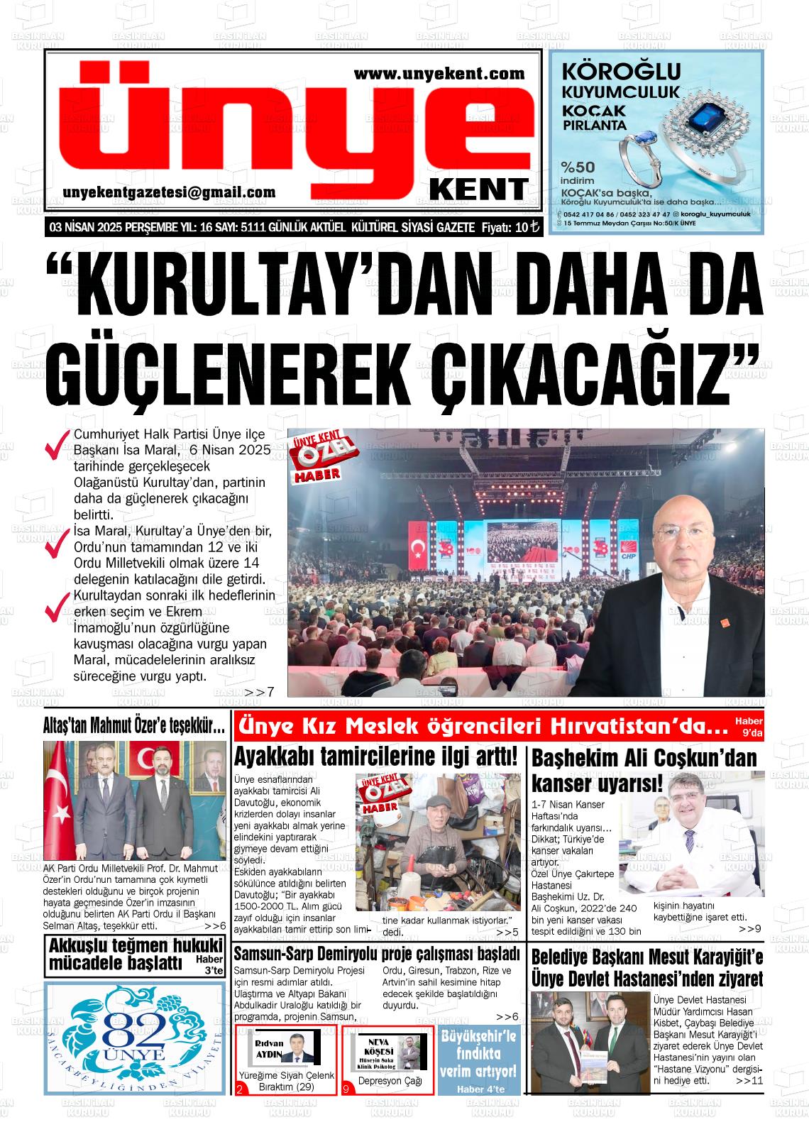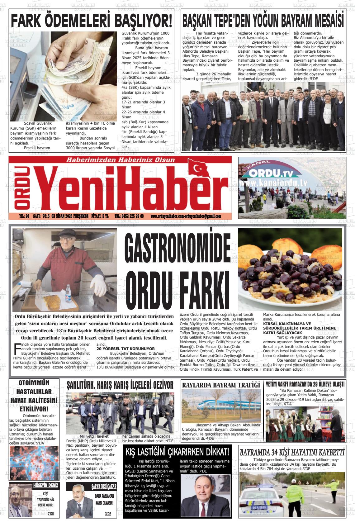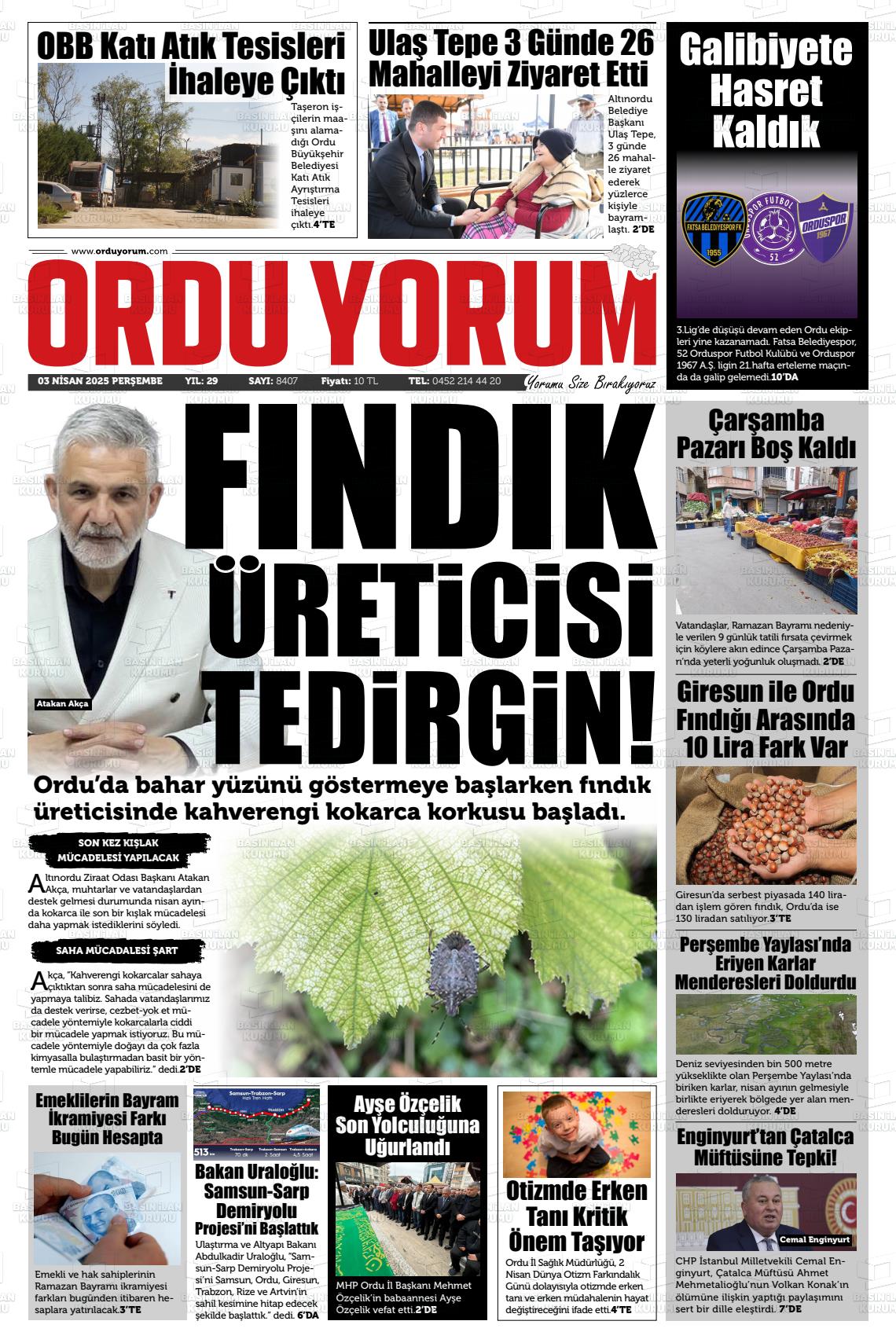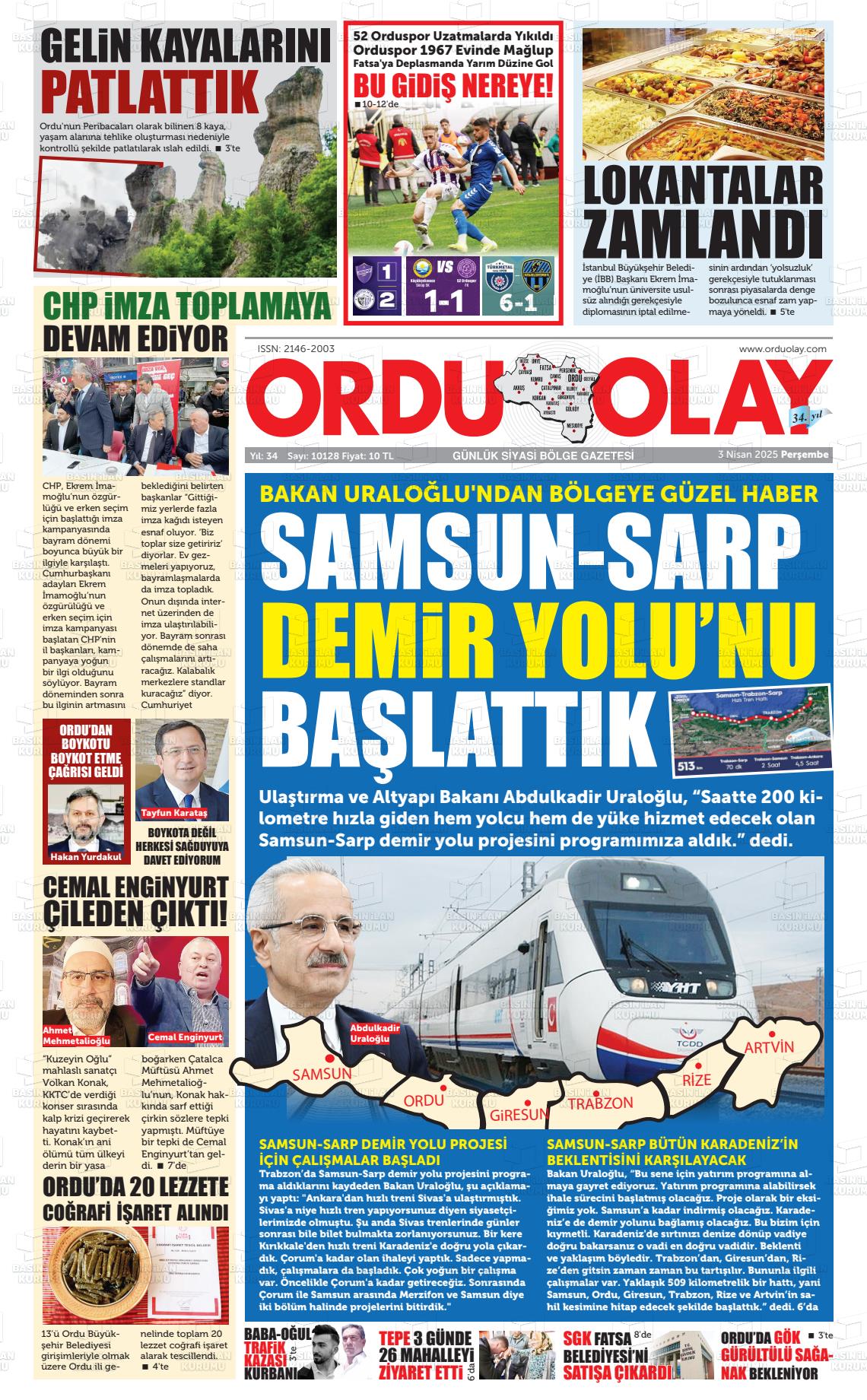 Ordu Yerel Gazeteleri 13 Aralık 2025, Cumartesi Günü Manşeti