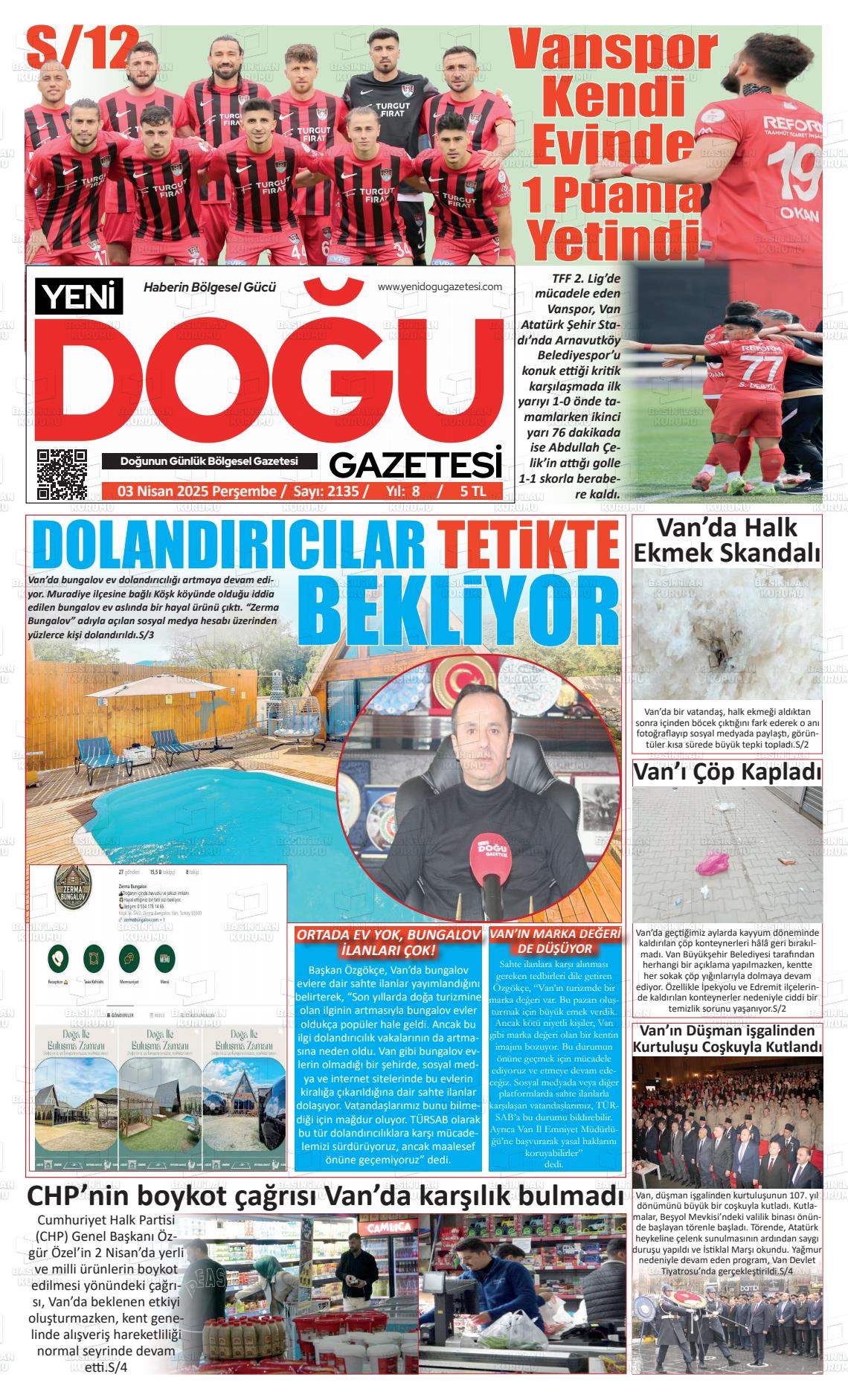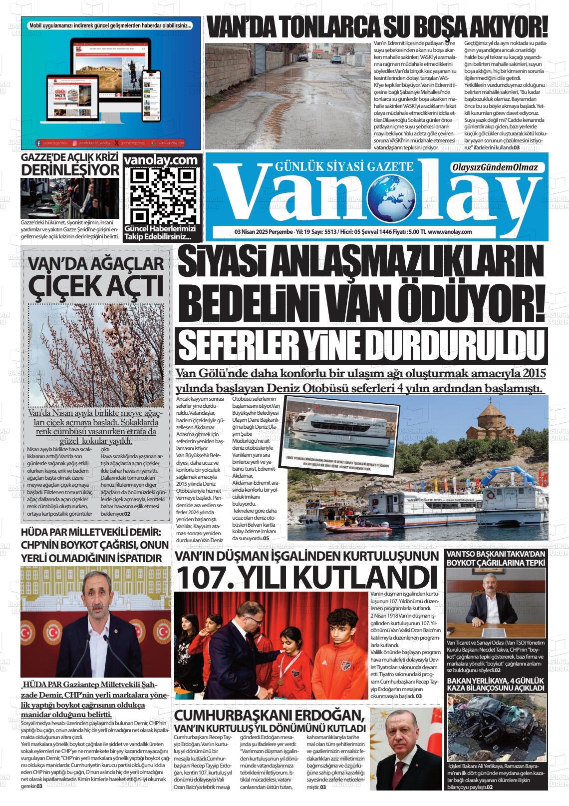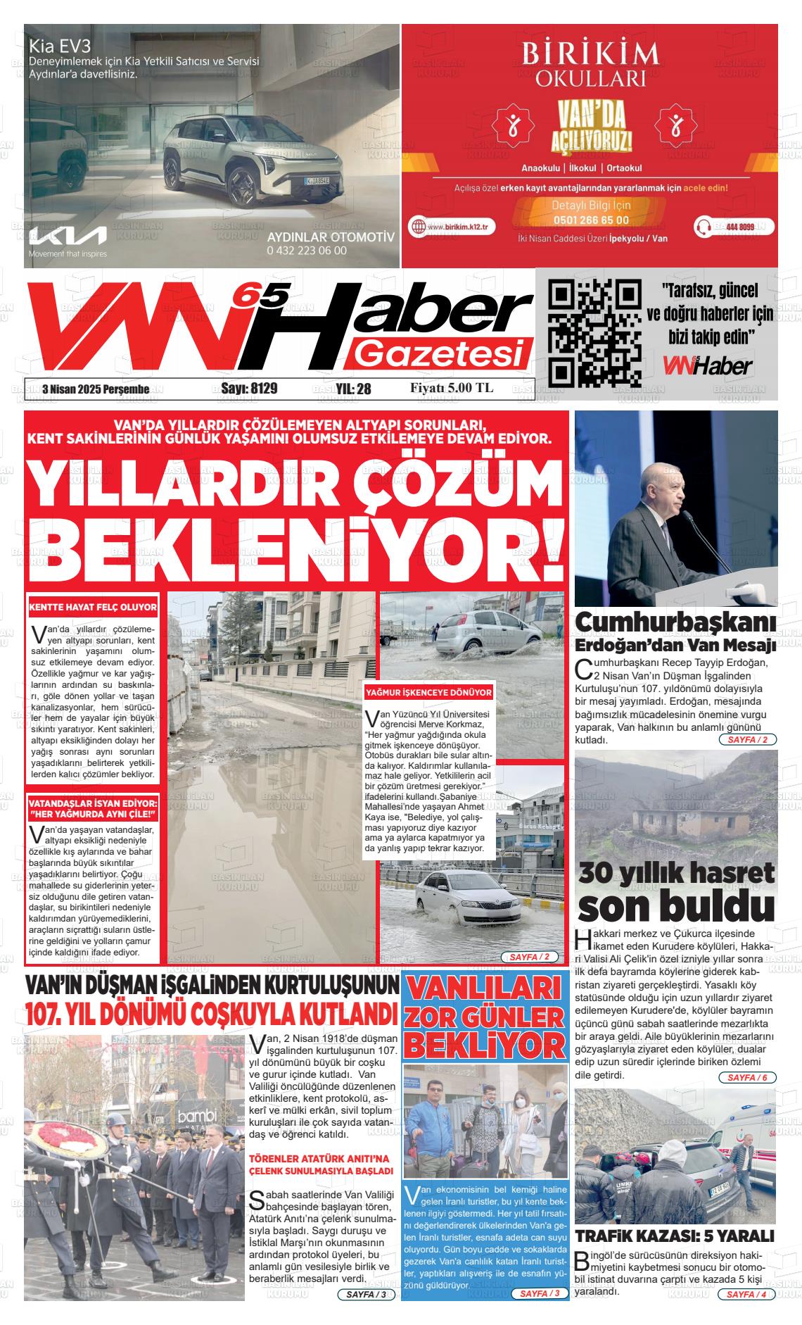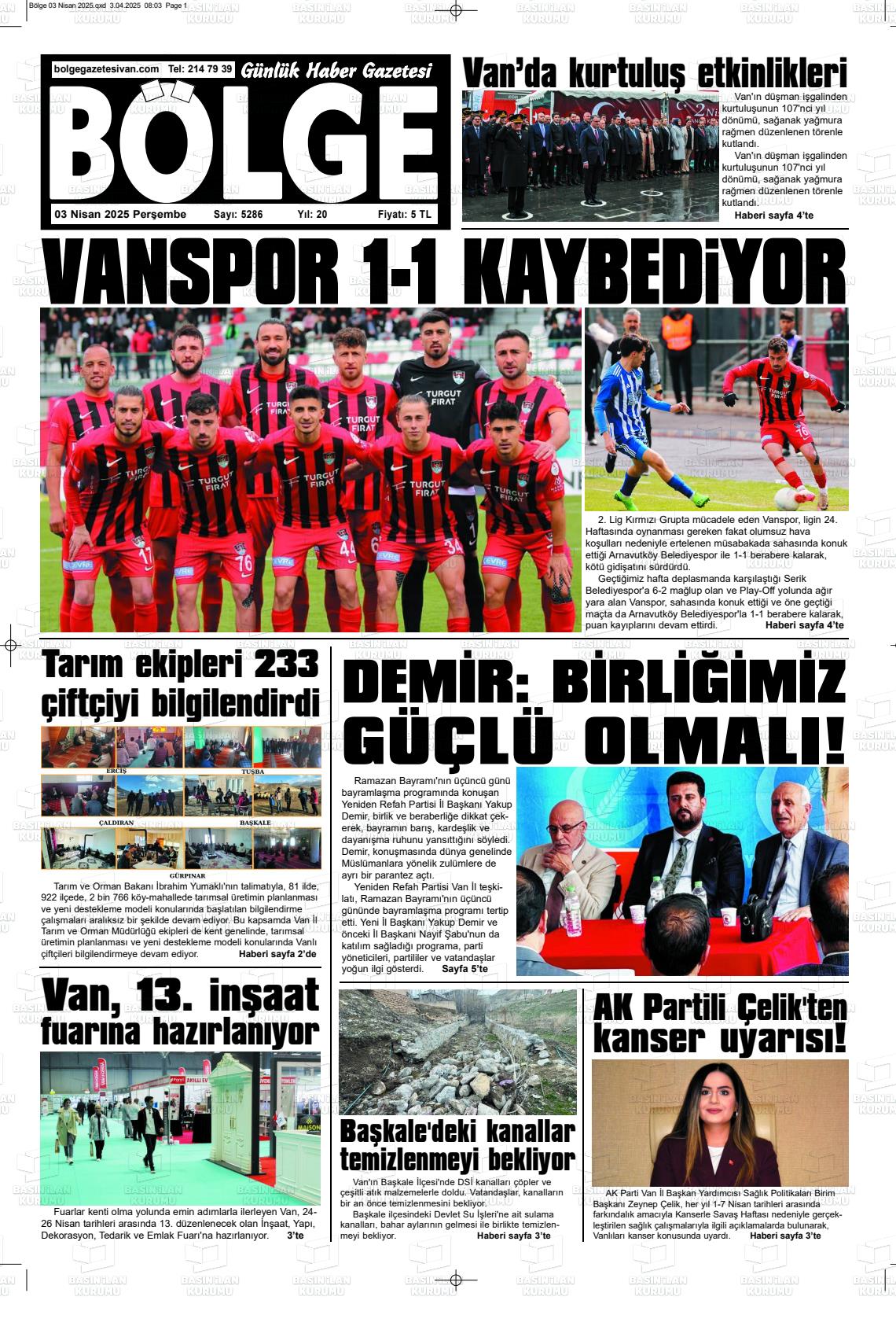 Van Yerel Gazeteleri 26 Ekim 2025, Pazar Günü Manşeti